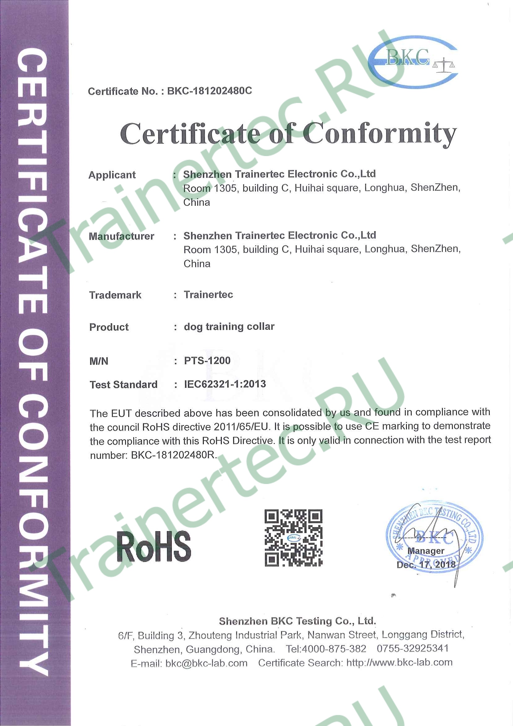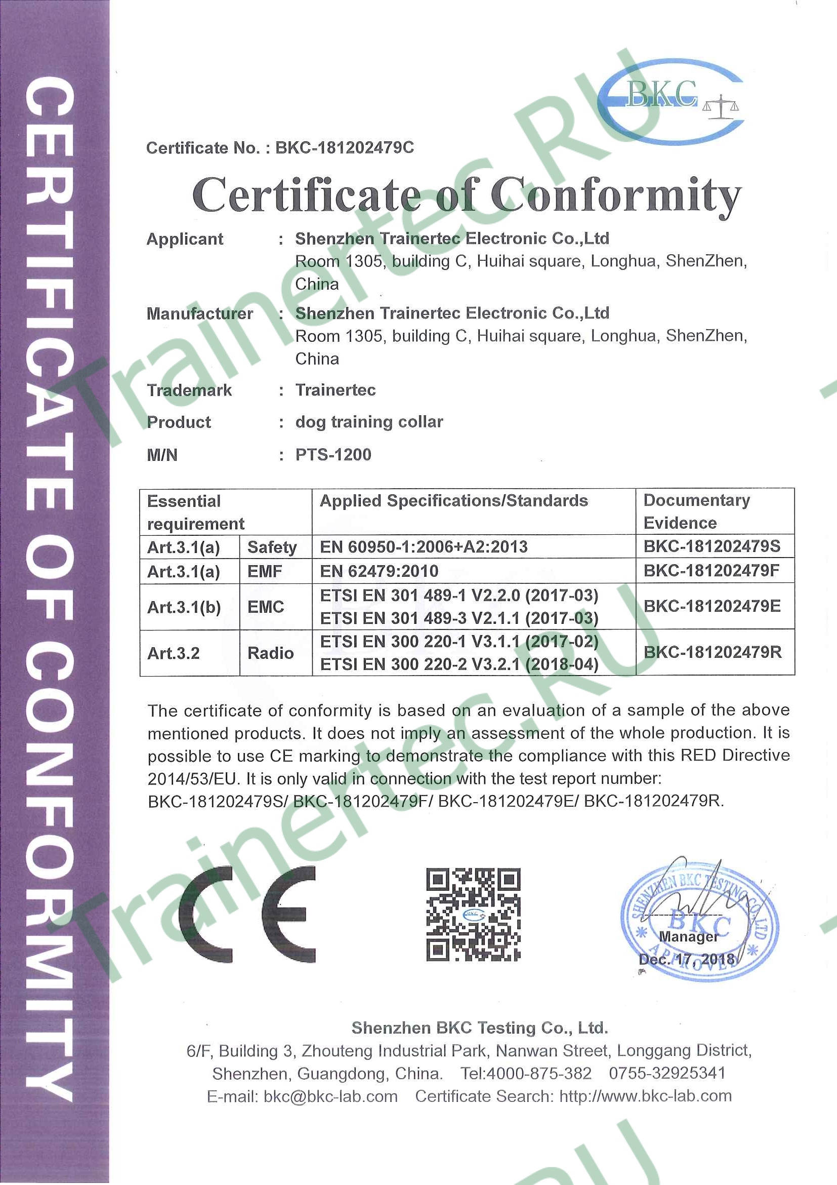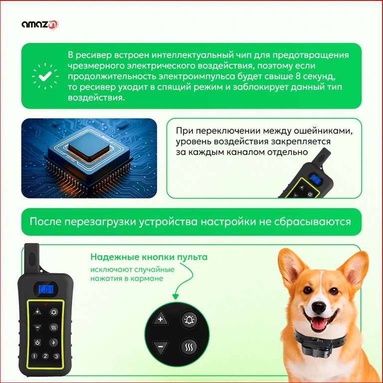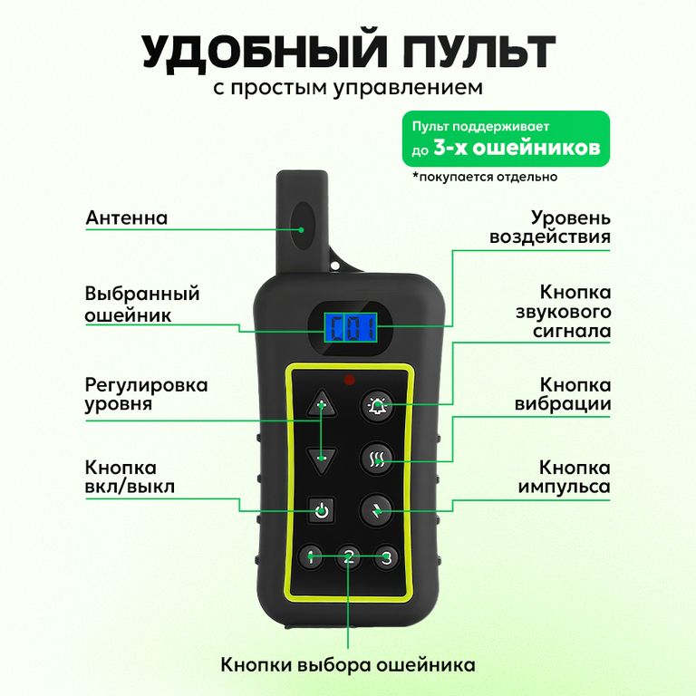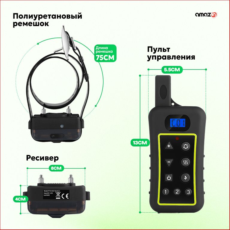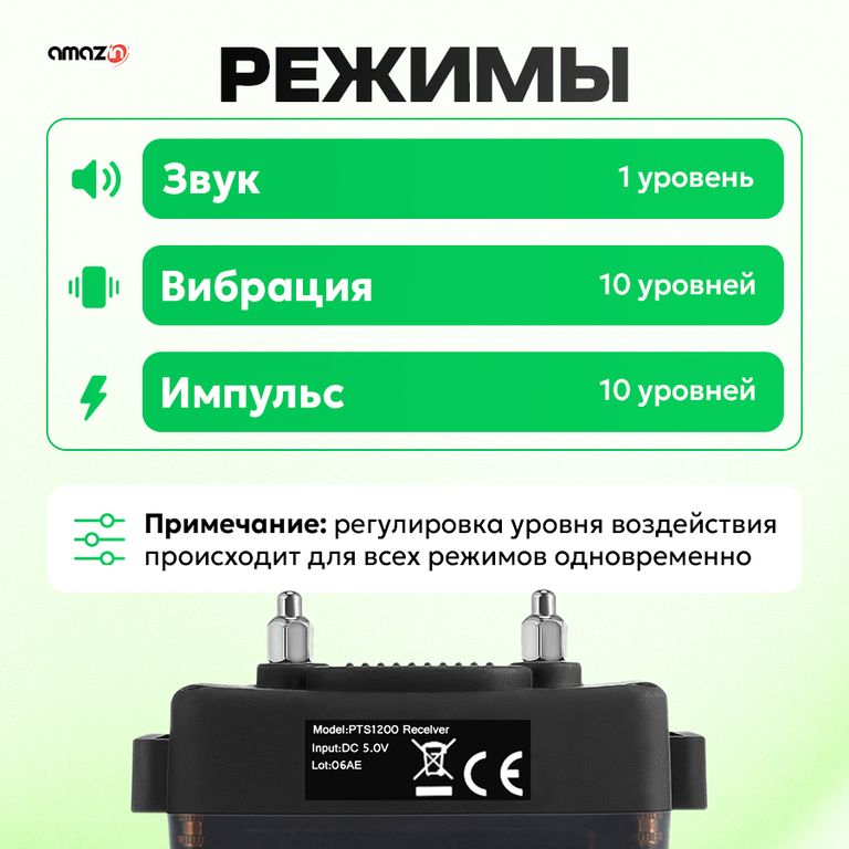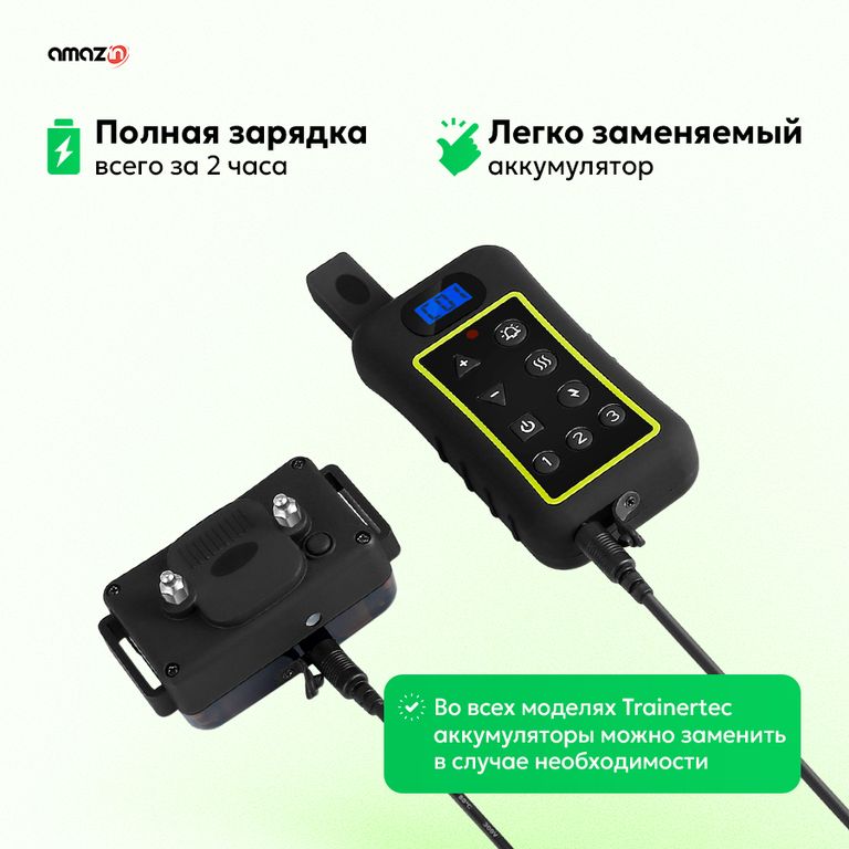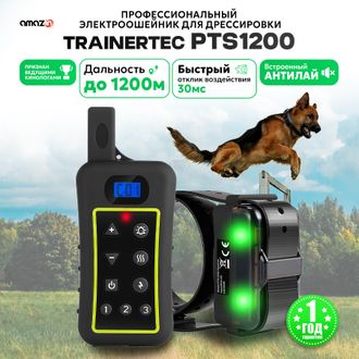 Trainertec PTS1200 - профессиональный электронный ошейник с 3-мя типами воздействия (звук, вибрация, ток), с регулируемой силой тока и вибрации для дистанционной дрессировки собаки, а также встроенный режим Антилай (автоматическое срабатывание на лай, вой, скулёж). Три канала связи для разных собак. Водонепроницаемая конструкция ресивера. Перезаряжаемый аккумулятор ресивера и пульта.