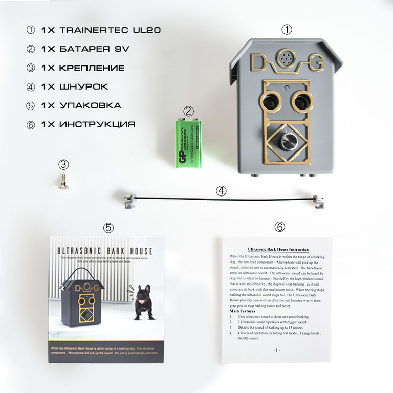 Trainertec UL20 - это стационарный ультразвуковой антилай для собак любых пород с настройкой интенсивности сигнала. Работает от аккумулятора. Радиус действия до 15 метров. LED-индикатор заряда. Два усиленных ультразвуковых динамика.